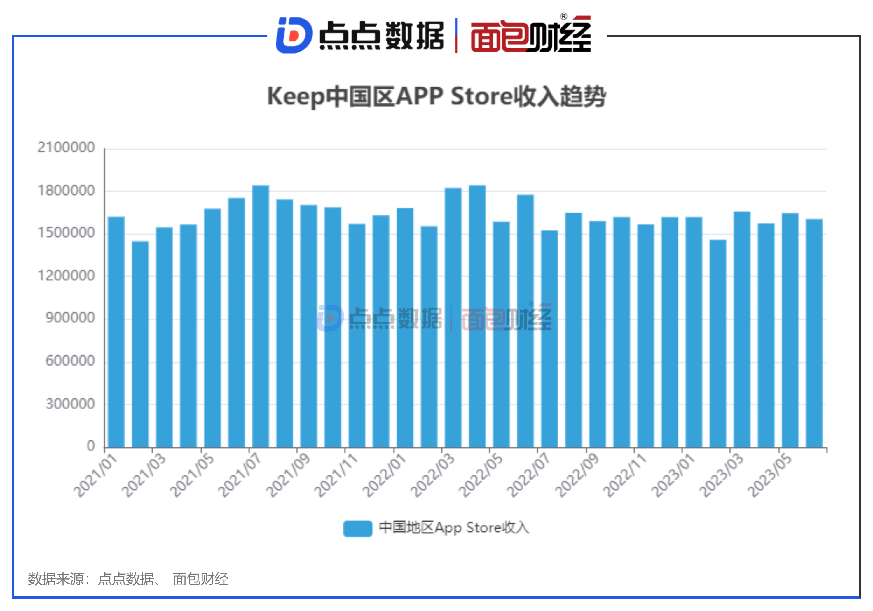 收入方面,2023年至今,Keep 在中国地内地App Store净收入较为平稳。点点数据显示,上半年 Keep 在中国内地的App Store 净收入超过960万美金,较去年同期下降约6%。(注:点点数据监测的收入口径是App store应用商店内购净收入(IAP),不包含第三方以及广告收入,且扣除平台分成。)