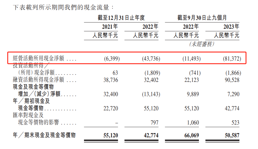 2023年前三季度,闪回科技经营活动产生的现金流量净额为负8137.2万元,现金流承压。截至2024年1月31日,公司账上现金及现金等价物为0.92亿元。