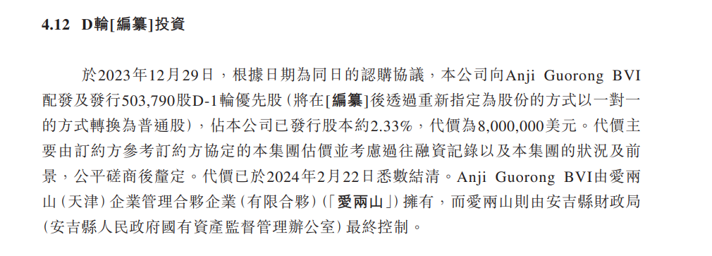 自成立以来,闪回科技完成多轮股权融资。2023年12月,闪回科技向Anji Guorong BVI配发及发行503,790股D-1轮优先股,占公司已发行股本约2.33%,代价为800万美元。