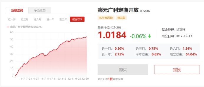 纯债基金鑫元广利定期开放凭借出色的业绩表现,为投资者带来持续稳健的投资回报。Wind数据显示,截至2026年2月26日,鑫元广利定期开放近三年以来净值累计上涨19.17%,同类排名第一。基金自2017年成立以来,总收益率超过50%,同类排名3/598。