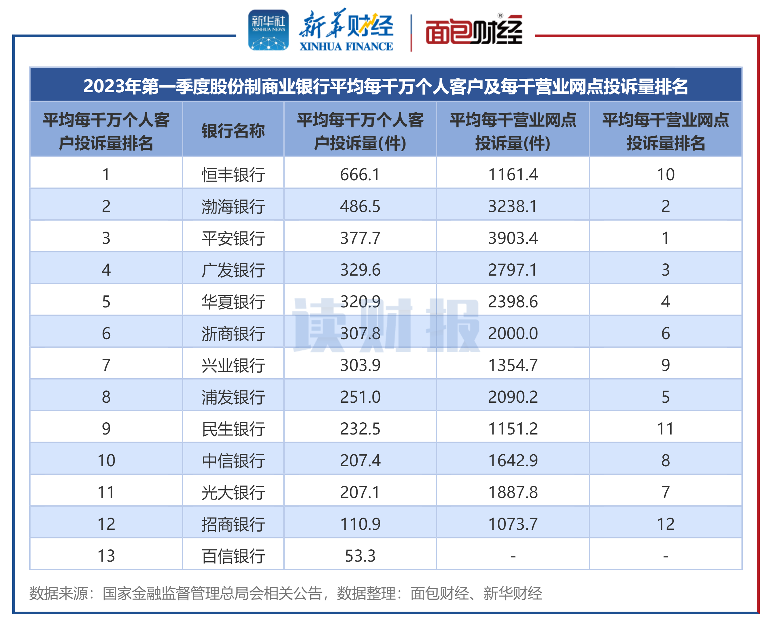 股份制银行:3家银行被投诉量超3000,渤海、平安、广发投诉密度居前