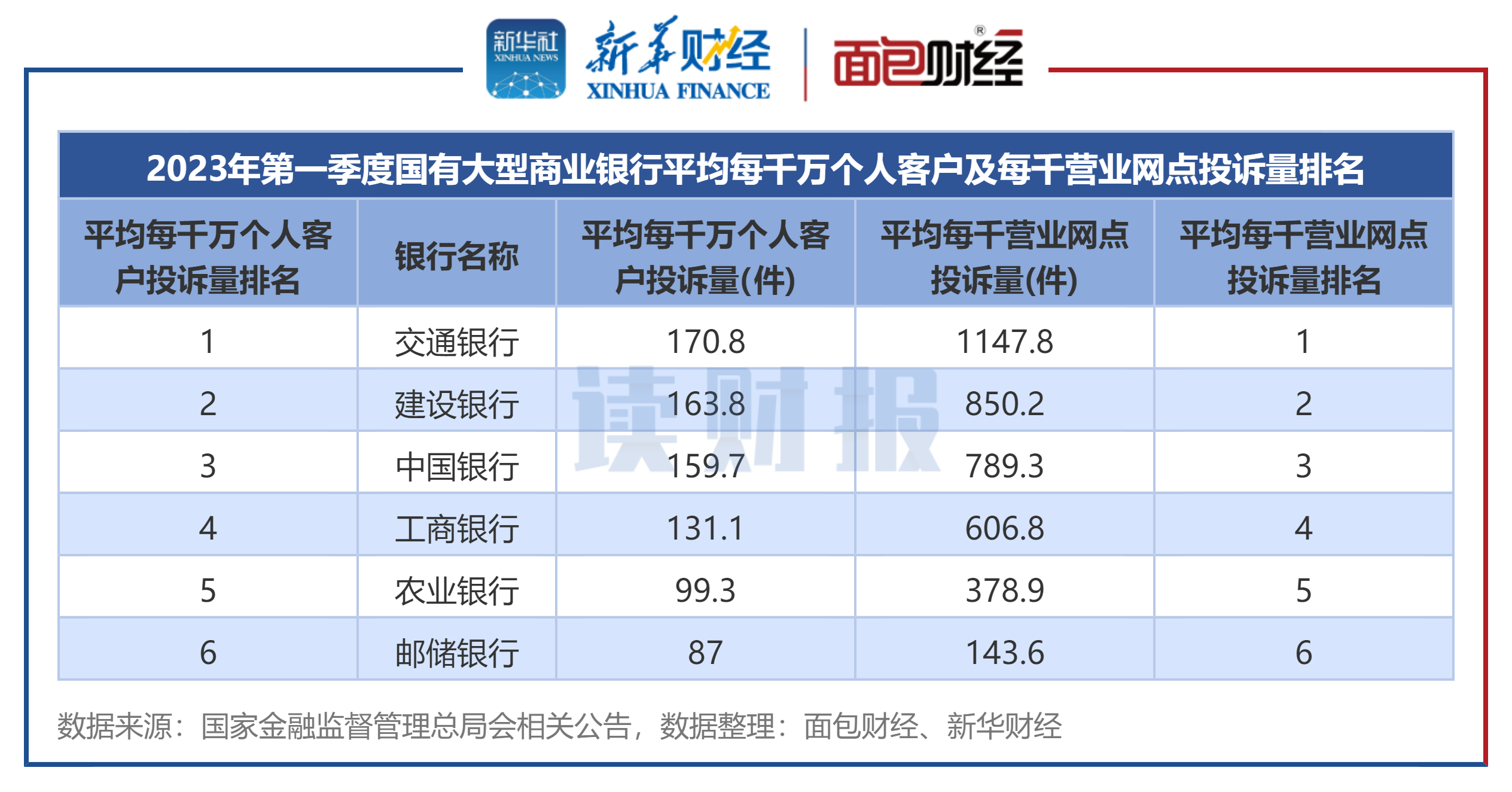 国有银行投诉量:建行、工行、农业居前三,交行被投诉密度居首