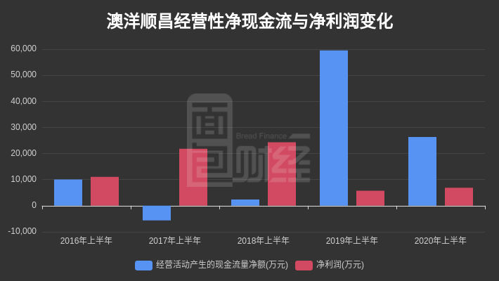 2018年上半年、2019年上半年及2020年上半年,澳洋顺昌经营活动产生的现金流量净额分别约2413.88万元、5.95亿元及2.64亿元。对应期间,公司净利润分别约2.43亿元及5753.01万元及6916.42万元。